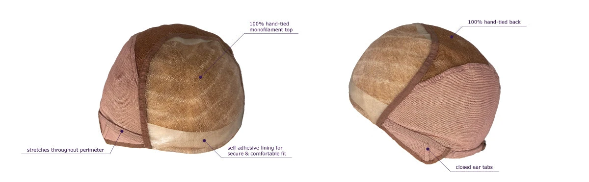 - Cap Construction: Mono Top | 100% Hand Tied Back