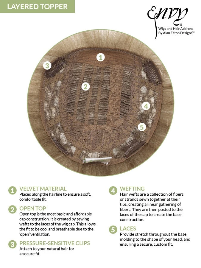 You’ll love to run your fingers through your hair when you’re sporting our Layered Topper—it’s meant to be touched and tousled. And because the Open Top construction allows air to circulate freely, it also means you’ll stay cool and comfortable, no matter where life takes you.