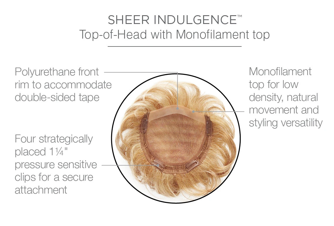Soft waves on a monofilament top allow for contemporary styling options with parting flexibility. Lightweight and flexible, Lyric is suited for use with short to chin-length styles that need extra fullness. This handy piece can also be used to give an updo a sophisticated finish.