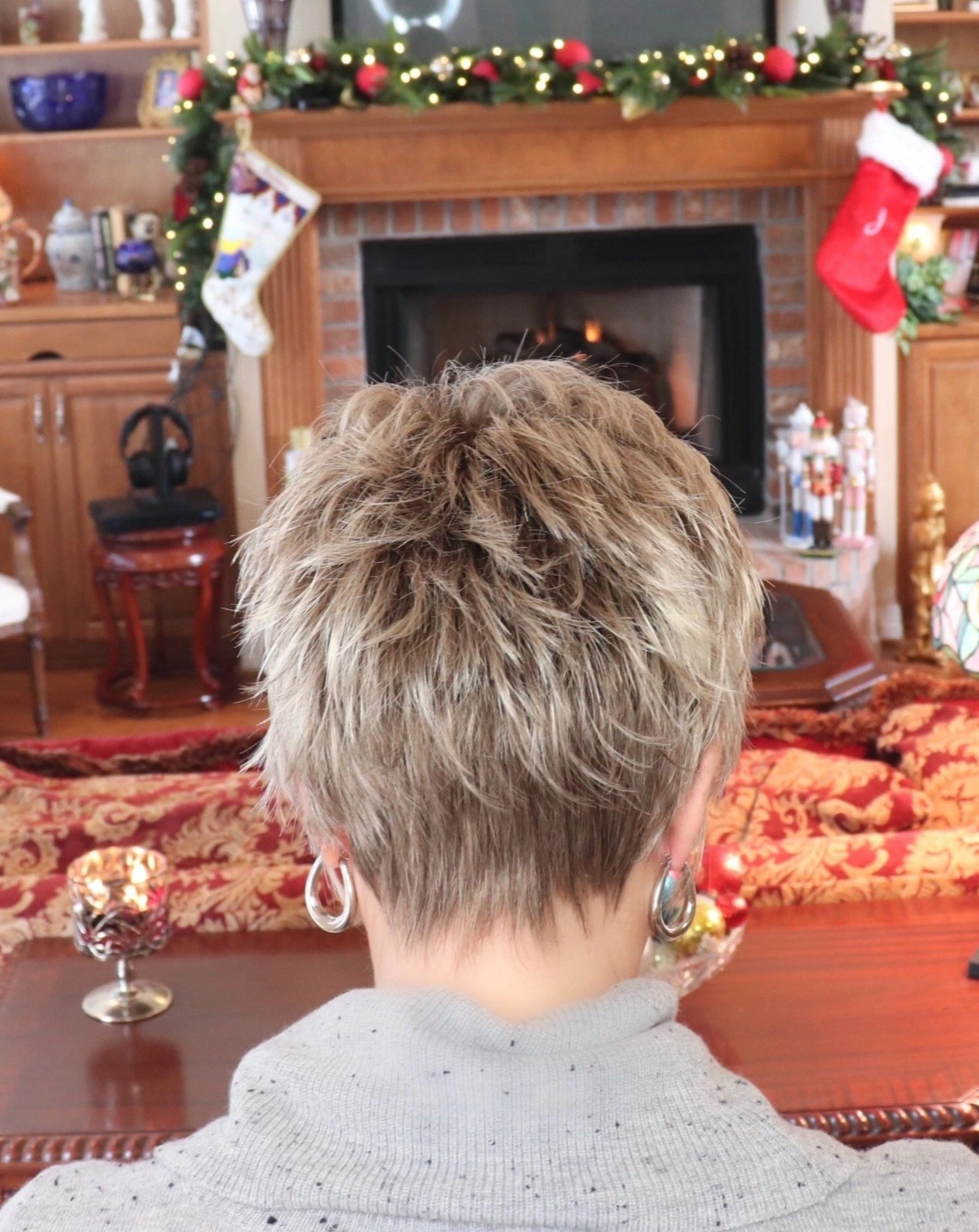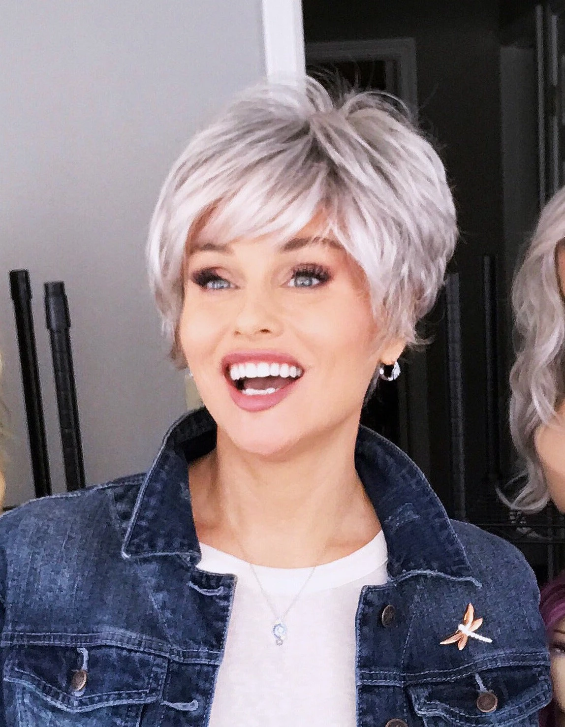 Sparkle Wig, by Raquel Welch, features face-framing, textured layers that offer natural volume that extends to the sides and back, blending into a tapered neckline.Â