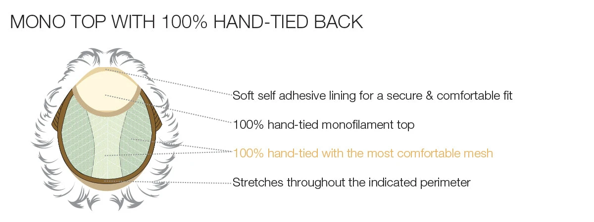 This below-the-shoulder cut with long layers features a monofilament top and a 100% hand tied back.Â